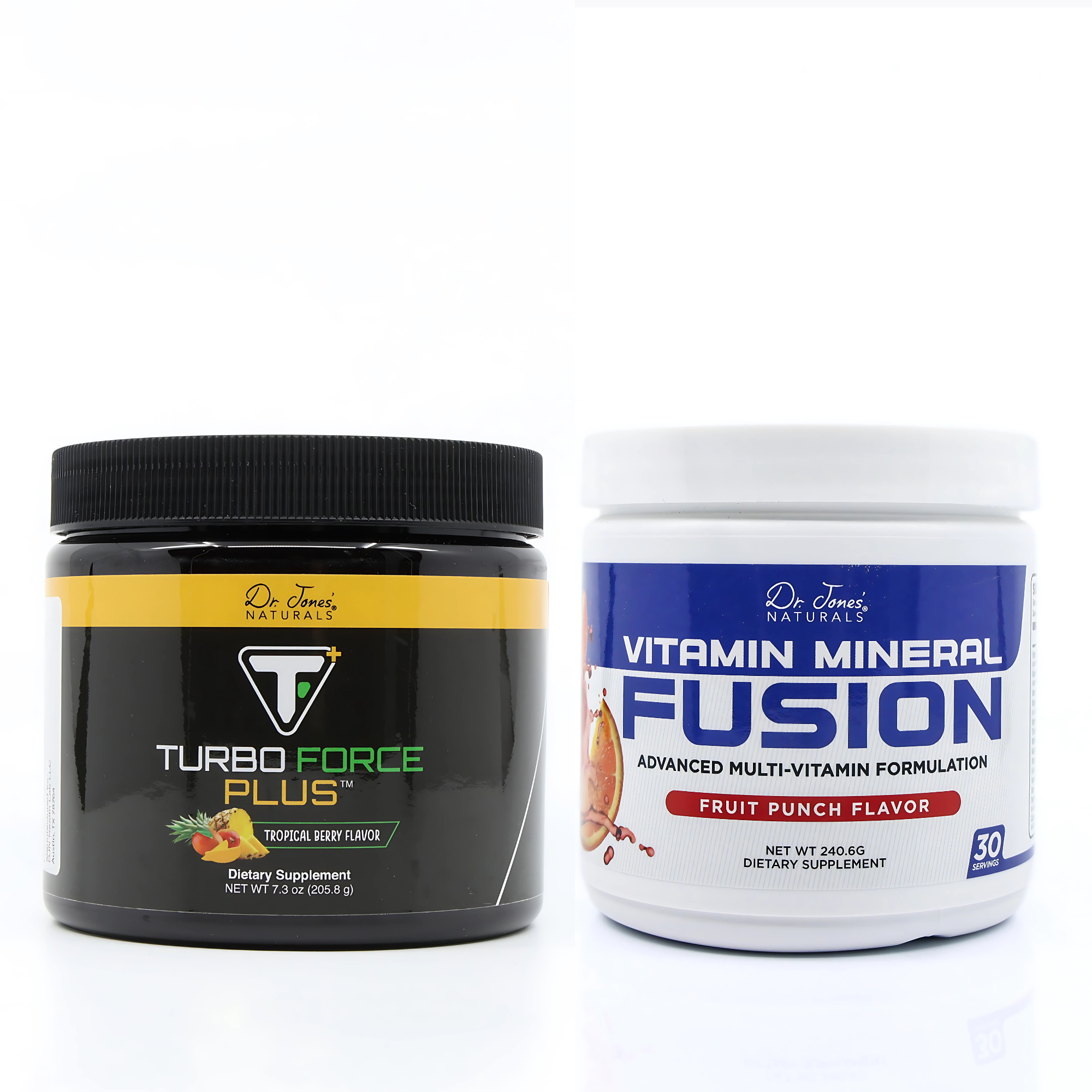 Elevate your daily wellness and energy levels with our Ultimate Health & Energy Bundle, featuring Dr. Jones Naturals Vitamin-Mineral Fusion and Turbo Force Plus.